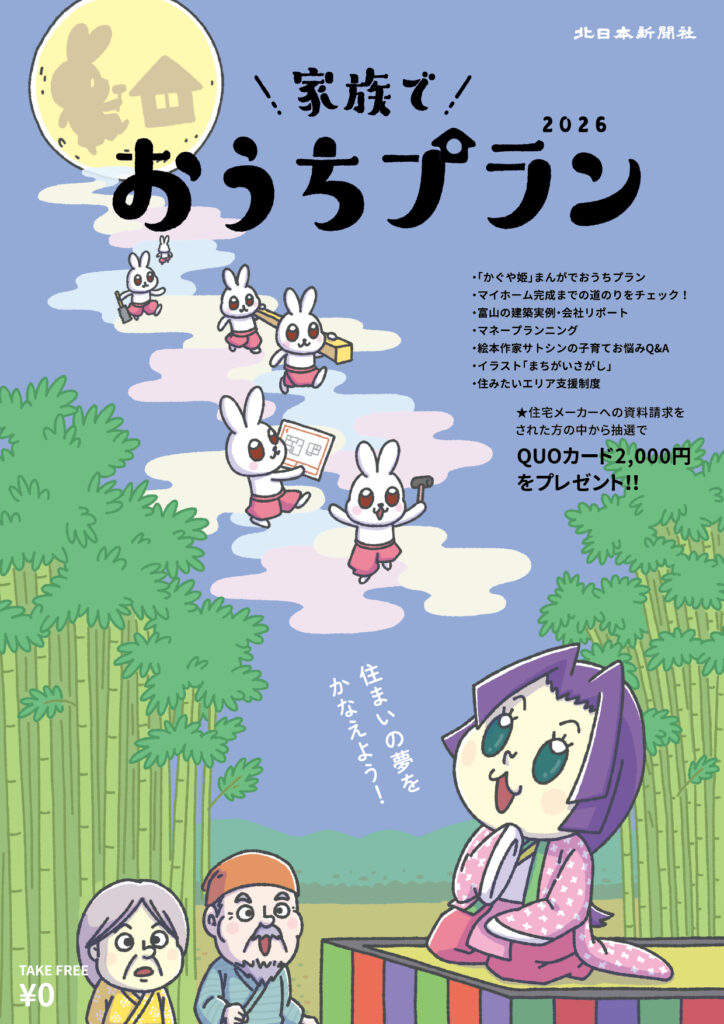 A4判、フルカラー76ページで、12,000部を発刊。紀伊國屋書店富山店や喜久屋書店高岡店、富山市内の大阪屋ショップなどに設置されているほか、希望の方は北日本新聞社メディアビジネス局、電話076(445)3320(平日午前9時~午後5時)に問い合わせるか、本ページ下部の問い合わせフォーム、家族でおうちプランのLINEお友達登録で必要事項をご記入ください。