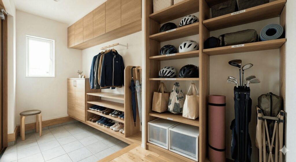 3. 収納は「奥行き」より「場所」 「大きな納戸を作ったけれど、結局中がぐちゃぐちゃ」というのはよくある失敗。今のトレンドは、使う場所に直結した「0.5畳の適所収納」です。玄関のコート掛け、ダイニング脇の書類棚、洗面所のパジャマ置き場。これらが整っているだけで、リビングに物が散らからず、急な来客にも動じない家になります。