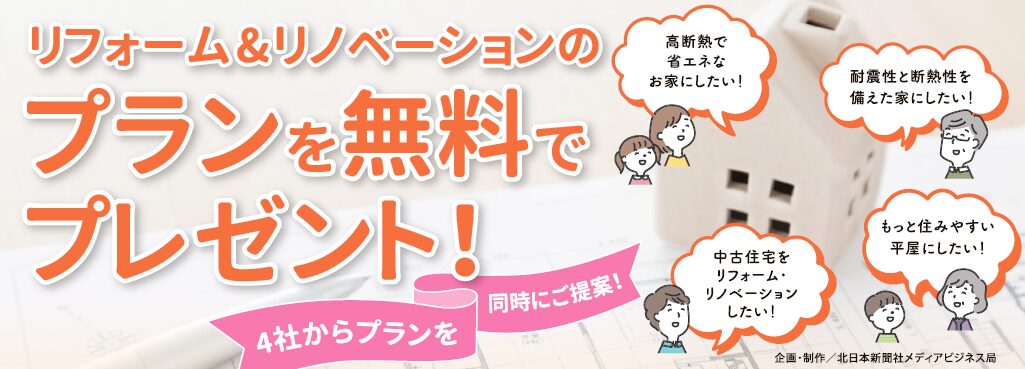 リフォーム&リノベーションのプランを無料でプレゼント!4社から同時にご提案が可能!
